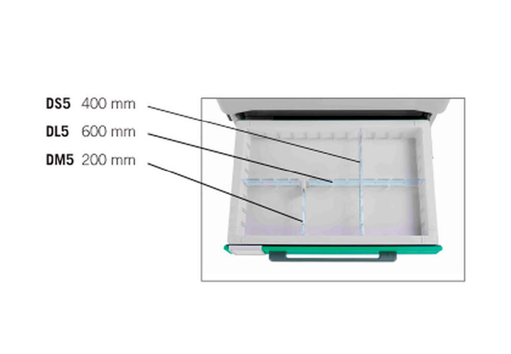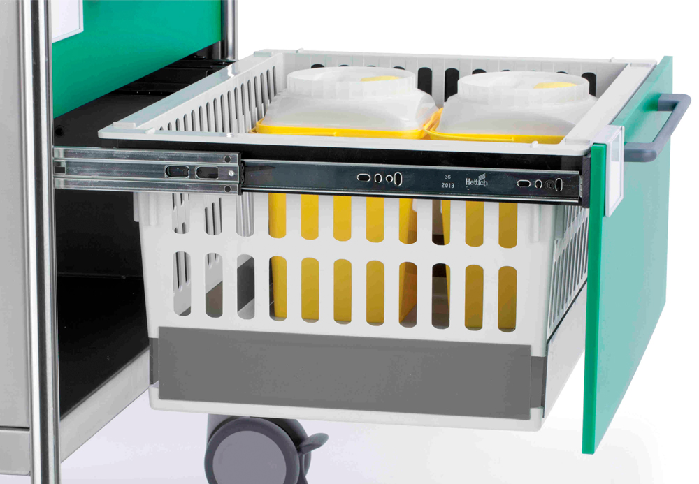 - Легко поднимаемые ящики размером 600 x 400 мм, соответствующие стандарту ISO 3394, которые можно использовать с другими тележками от производителя
